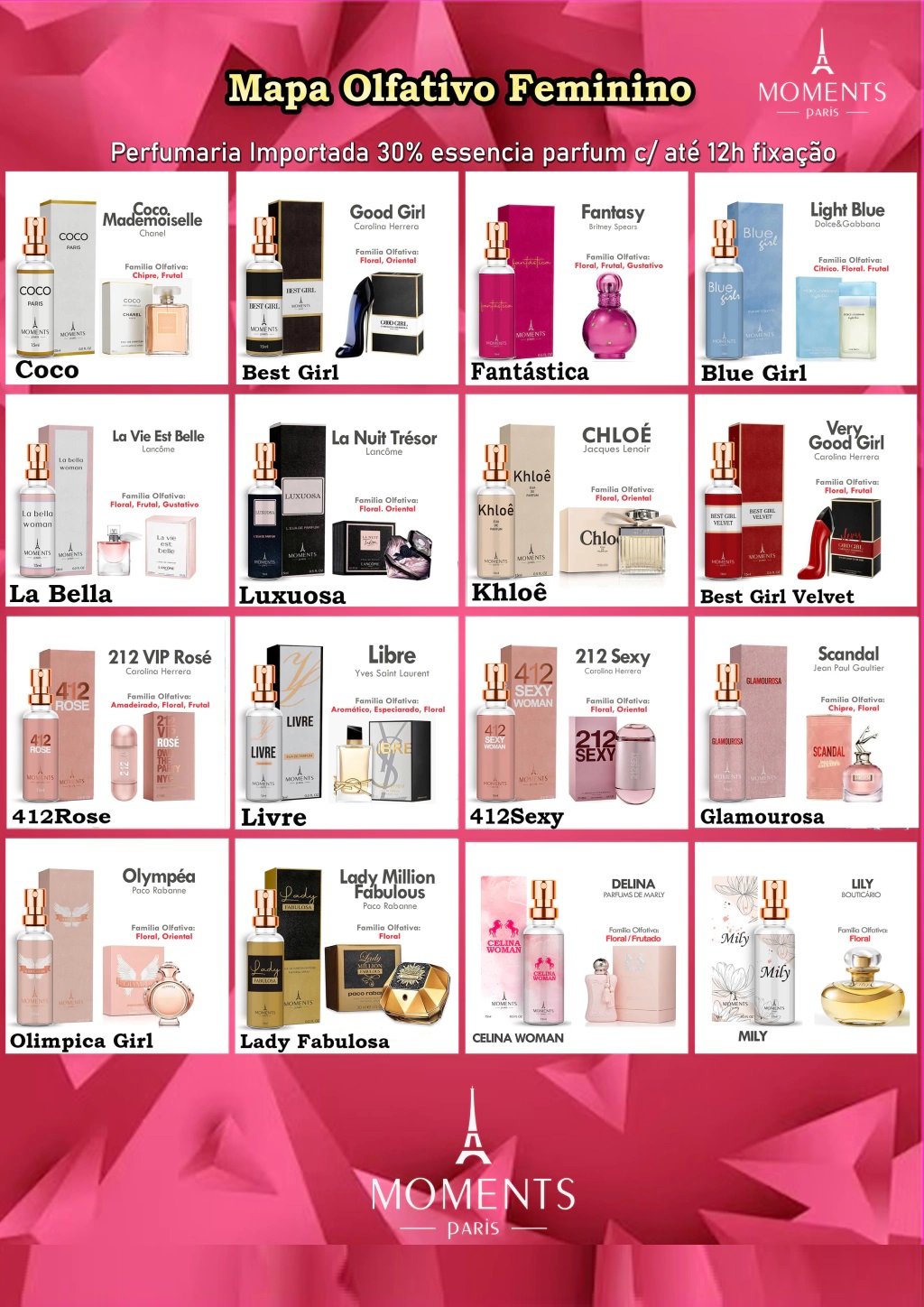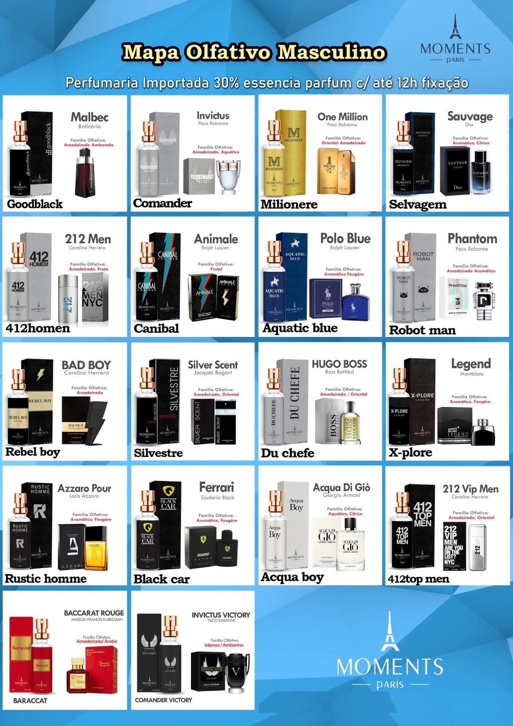 Portáteis e Práticos! Preço Especial! Garanta já o seu agora e sinta a sofisticação da Moments Paris ao seu alcance! Perfumes com 30% de óleo, garantindo até 8 horas de duração.